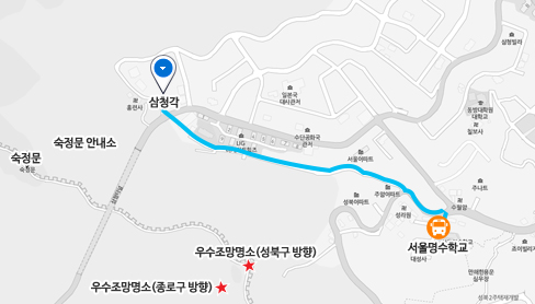 ㆍ지하철 5호선 광화문역 2번 출구에서 마을버스 종로 11번을 타고 삼청동(종점) 정류장에 하차하여 삼청공원길을 따라 도보 30분이 소요된다.